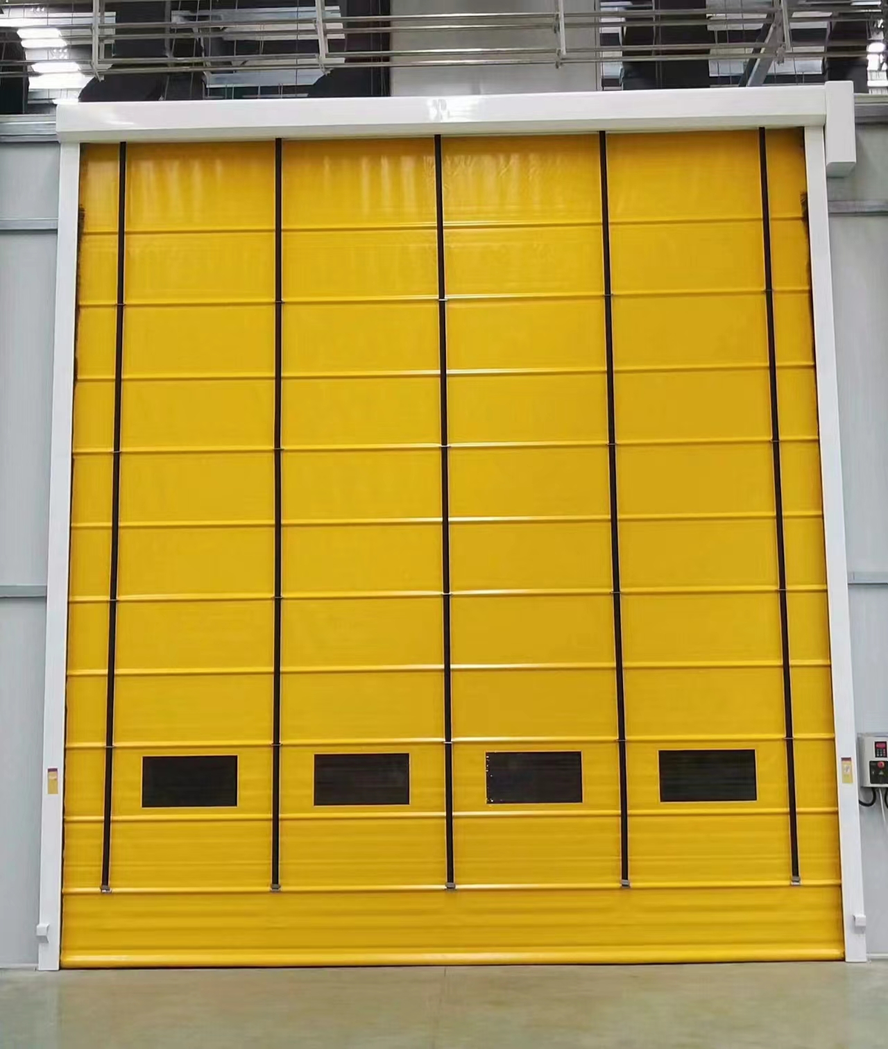 快速堆積門是在吸取國內外同類產品優點的基礎上研製生產的“抗風型”高速門(mén)產品。采用折(shé)疊高速提升,內置橫向抗(kàng)風杆設(shè)計,使風壓(yā)可以均布於門簾整體。具有良好的抗風性能,同時,也(yě)具有滾筒式高速卷門(mén)的各種優點。適用於(yú)大麵積、大跨度的各種建築。高要(yào)求頻繁物流的各類建築外牆專門快速門。適用於風壓或負壓<65kg/m2的室內(nèi)門洞或大型門洞條件安裝。